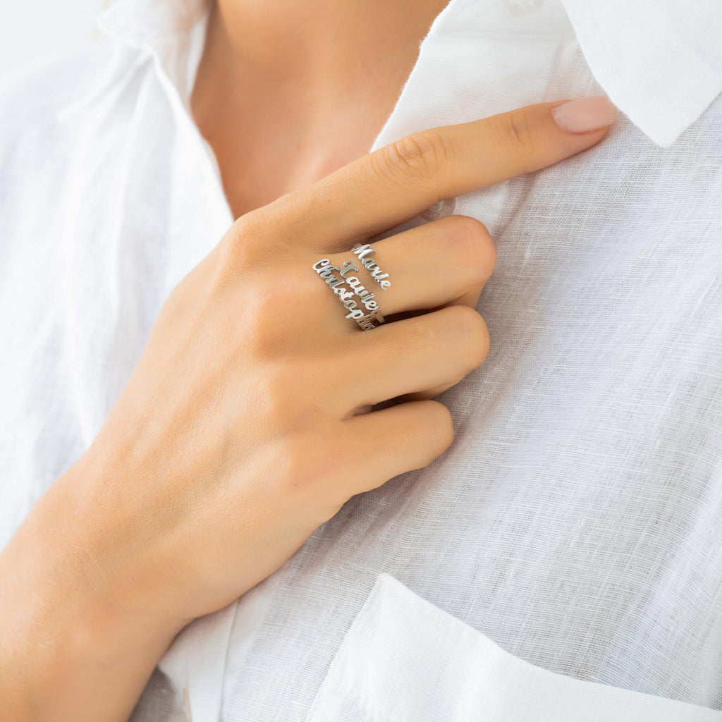 Ontdek onze prachtige, met liefde ontworpen , gepersonaliseerde ring , waarin de voornamen van uw dierbaren voorkomen. Met dit unieke stuk kunt u uw dierbaren altijd dichtbij u houden, zelfs als u ver van hen verwijderd bent.