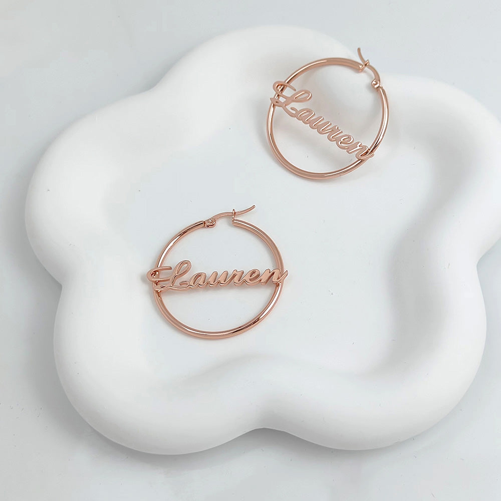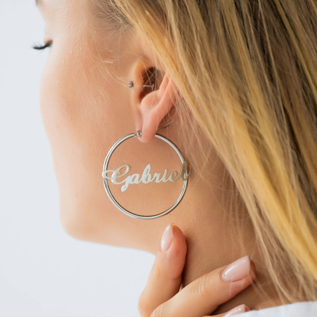 Bovendien zijn deze gepersonaliseerde oorbellen een ideaal cadeau voor uw dierbaren . Geef een paar met je eigen voornaam en/of die van een geliefde cadeau, voor een cadeau dat zeker in de smaak zal vallen . Gepersonaliseerde sieraden drukken op een uitzonderlijke manier uw liefde en waardering uit voor uw dierbaren .