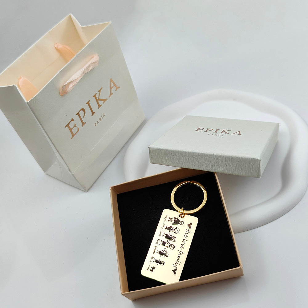 Leg uw dierbaarste herinneringen vast met onze gepersonaliseerde sleutelhanger , een ware schat aan emoties die de liefde en unieke banden binnen uw gezin zal vastleggen .