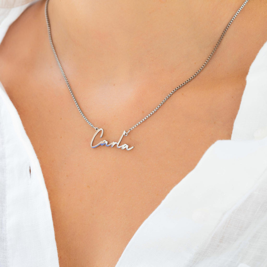 Wat deze ketting echt bijzonder maakt, is de mogelijkheid om de voornaam of het woord naar keuze op te schrijven . Stel je voor dat je de voornaam van iemand die een diepe betekenis voor je heeft dicht bij je hart houdt, of het nu die van een geliefde , je soulmate of zelfs die van jezelf is.