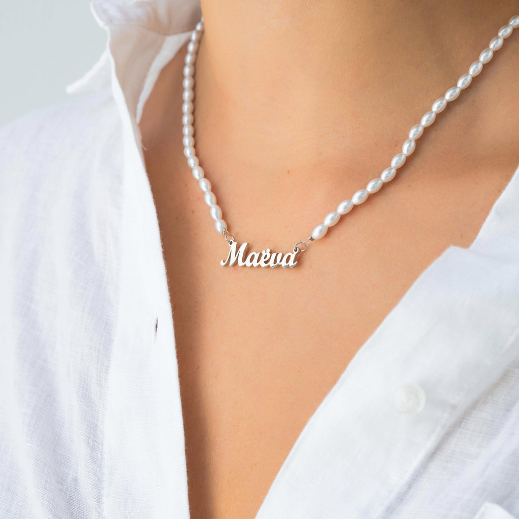 Onze ketting is met de grootste zorg en oog voor detail gemaakt . Elke kraal wordt met de hand ingeregen en de voornaam wordt met zorg bewerkt door onze getalenteerde ambachtslieden . Deze ketting is ontworpen om lang mee te gaan . De weerstand tegen water en huishoudelijke producten garandeert dat het zijn oorspronkelijke glans behoudt zonder te roesten . Je kunt hem met vertrouwen dragen, in de wetenschap dat hij je dierbaarste herinneringen zal koesteren .
