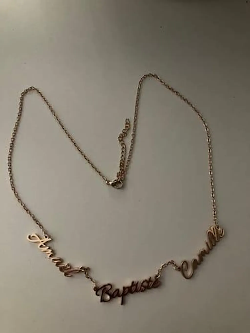 Découvrez notre magnifique collier personnalisable conçu avec amour, où les prénoms de vos êtres chers prennent place. Cette pièce unique vous permet de garder vos proches toujours près de votre cœur, même lorsque vous êtes loin d'eux.